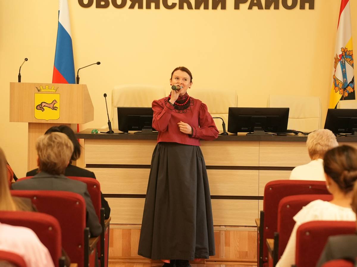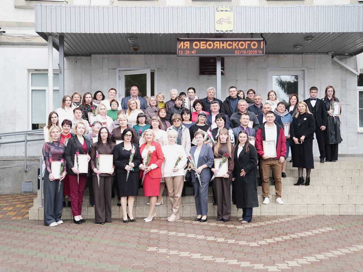 2 октября прошло торжественное мероприятие, посвящённое Дню Учителя. Педагогов района, работников дошкольного образования и ветеранов отрасли с профессиональным праздником поздравили: Первый заместитель Главы Администрации Обоянского района Эдуард Губанов, помощник депутата Курской областной Думы Анатолия Зуй – Галина Крапивцева, начальник Управления образования Администрации Обоянского района Татьяна Черникова. Лучшие работники отрасли были отмечены почетными грамотами и благодарностями. Церемонию награждений и поздравлений сопровождали концертные номера, подготовленные работниками районного Дома народного творчества и Детской школы искусств.