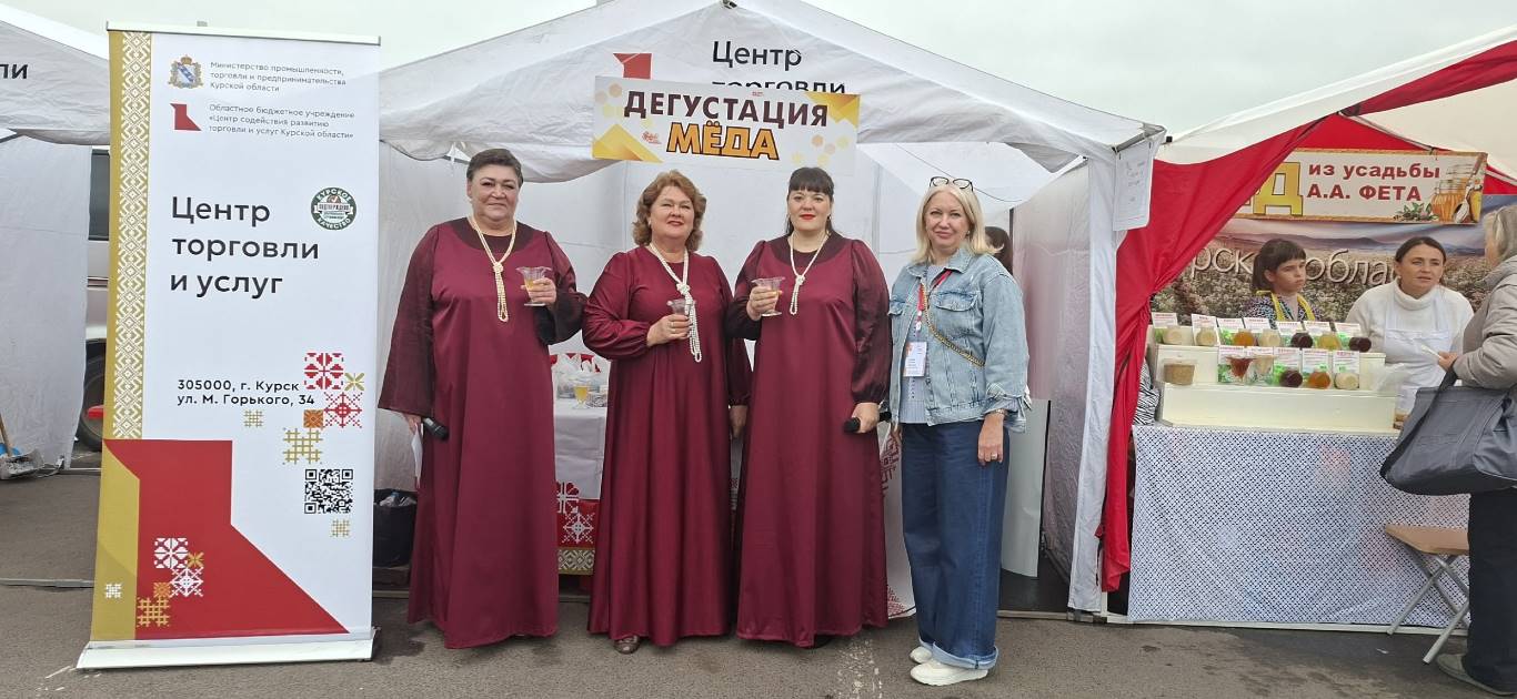 23 августа вокальное трио «ТОНика» Обоянского РДНТ стали участниками ежегодной специализированной ярмарки «Курский Мед – 2025». Артисты дарили свои номера зрителями, пчеловодом, посетителям торговых рядов, которые поддерживали артистов бурными овациями.