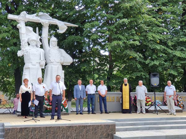 На митинге выступили: Депутат Курской областной думы Анатолий Зуй, Глава города Обояни Александр Локтионов, Председатель Представительного Собрания Обоянского района Александр Лукьянчиков, Председатель Совета ветеранов войны и труда Владимир Бердников.